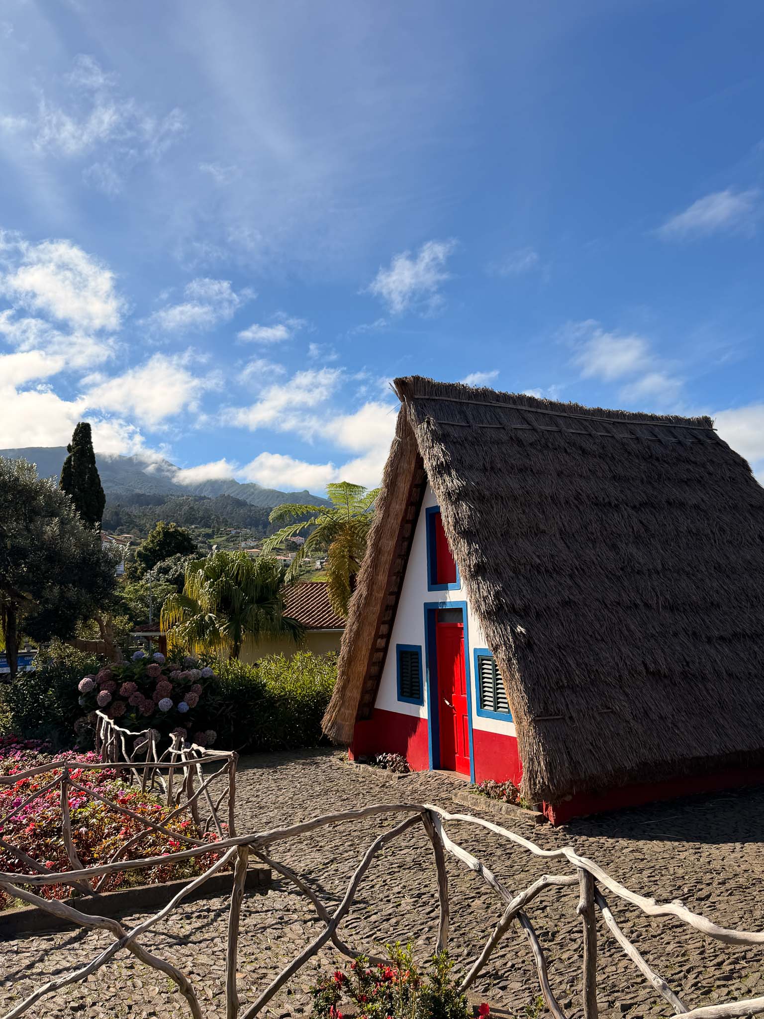 Santana liegt an der grünen Nordküste Madeiras und ist vor allem für seine traditionellen strohgedeckten Häuser bekannt. Sie zählen zu den bekanntesten Fotomotiven der Insel. Die sogenannten Casas de Santana sind dreieckige Bauernhäuser mit reetgedeckten Dächern, die früher aus lokalen Materialien wie Holz und Stroh gebaut wurden und durch ihre Form gut vor Regen schützten. Heute sind viele dieser Häuser restauriert und geben einen anschaulichen Einblick in die ländliche Bauweise vergangener Jahrhunderte. Rund um Santana prägen steile Berghänge, tiefe Täler, Lorbeerwald und zahlreiche kleine Wasserfälle die Landschaft. Die Region gehört zu den grünsten Teilen Madeiras und verbindet kulturelles Erbe mit ursprünglicher Natur.